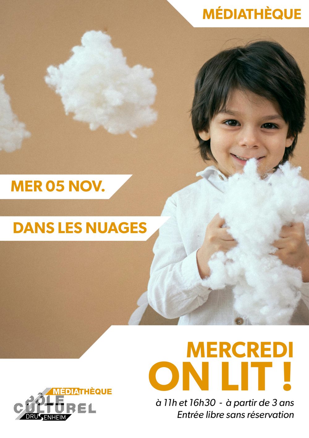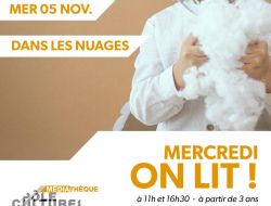 Après le spectacle "Nuages" proposé le mercredi 5 Novembre à 10h, la Médiathèque propose aux petits et grands de voyager à travers le ciel et les nuages. Le temps sera-t-il de la partie ?